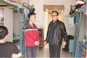 院领导着重检查了学生寝室是否存在安全隐患,并就学生的学习近状、寝室生活习惯等方面与学生进行交流,大多数学生在与老师交流之中展现出良好的精神面貌,遇见老师能够积极主动问好。