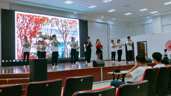 此次比赛,机电系参赛队伍有形之声、心灵窗口、无声之说、灵魂手指四支队伍。舞台上,他们手指翻飞,向评委观众们演绎着所带来的歌曲。其中,形之声队的《等你下课》在节目主题、创意等方面都大胆创新,别出心裁,将手语操表演与现场情景巧妙结合,普及了心理健康知识,给予评委观众别样的心灵感受,最终成功获得了二等奖。