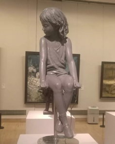 张钰钏老师的作品《望》,塑造一位轻松坐姿的小女孩形象,在体积与空间的错落中寻找一种静谧感,反应出鲜明的时代主题。体现了作者在当代丰繁复杂的艺术思潮下,扎根生活、不断创新,紧随时代的价值追求和美学品格。此次作品的入选展示出我院青年教师关注社会、关注生活的炽热情感及对艺术的不懈追求反映了我院在艺术创作与创新方面的探索和成果我院将完善有益于青年教师人才发展的良好机制,鼓励勇于突破和创新的锐气,大力支持创作出更多彩和内涵深刻的艺术作品。