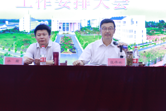 张伟林院长用100分时间做了简单汇报讲话,主要内容包括三个方面。首先,张院长对从7月13号到7月15号学院举办的四年办学工作总结会议,通过反思、探索、谋变总结了研讨情况及会上提出的对全院今后工作的改进与落实情况进行了通报;其次,张院长对学院今年上半年的工作,从教育教学工作、学生教育管理与毕业生工作、师资队伍建设工作、党建与宣传工作、信息化建设工作、后勤保障服务工作等12个方面,突出重点,进行了总结。既肯定了城建学院2018年上半年来取得的成绩,也严肃地指出了工作中存在的错误和不足,并提出了改进工作的要求;最后,张院长对于学院制度建设和完善、教育教学、师资队伍和管理队伍建设等乃至今后一段时间的工作提出了明确的任务要求。对于假期招生、后勤保障、校园建设等十个方面提出了具体的工作任务和部署。