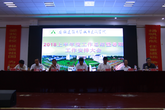 2018年7月16日上午9点,安徽建筑大学城市建设学院在图书馆二楼报告厅召开学院2018年上半年度工作总结暨暑期工作安排全体教职工大会。会议由学院副院长王志建主持,学院党委副书记、董事长林瀚,执行董事赵治滨,院长张伟林,党委副书记魏宪友,副院长吴约、田园,各系主任各职能部门主要负责人及全院全体教职工参会。