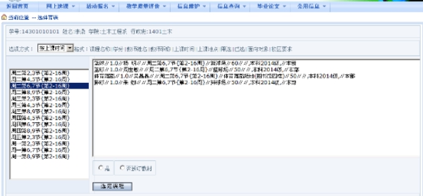 2.选课前,各学生认真查看本学期个人课表(下图),掌握自己的自由时间(即无课时间)。