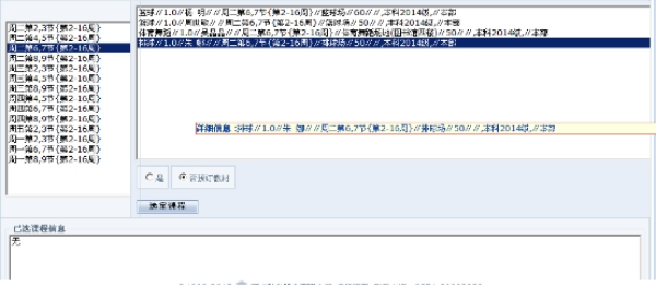 3.根据自己的自由时间段和项目人数余量(限选减已选为余量),选择体育项目。确定要选择的体育项目后,在“可选项目显示区”点击你要选择的项目,点击“否预订教材”前面的圆圈,再点击“