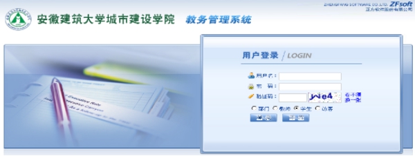 1.请每位学生登录安徽建筑大学城市建设学院教务管理系统,登录地址为:http://172.16.23.244/,或通过校园网-办公系统-正方教务管理系统栏进入。系统登录界面如下图。