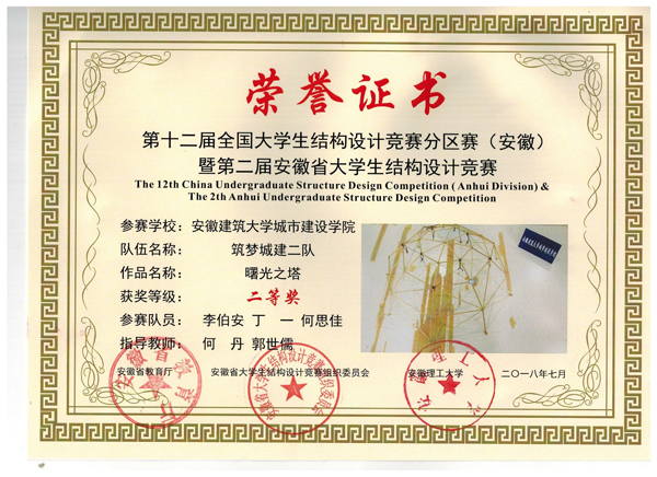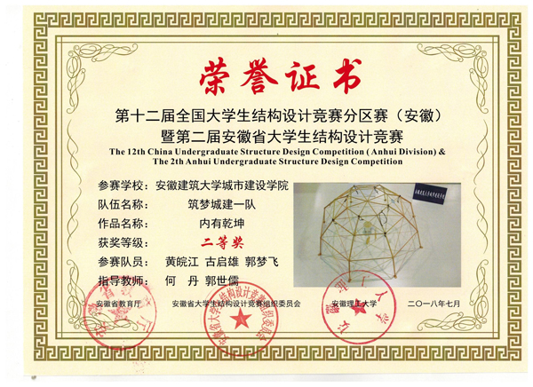 5月17日至20日,在第十二届全国大学生结构设计竞赛分区赛(安徽)暨第二届安徽省大学生结构设计竞赛中,我院选送的两支代表队取得优异成绩。