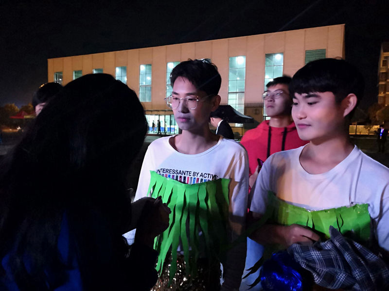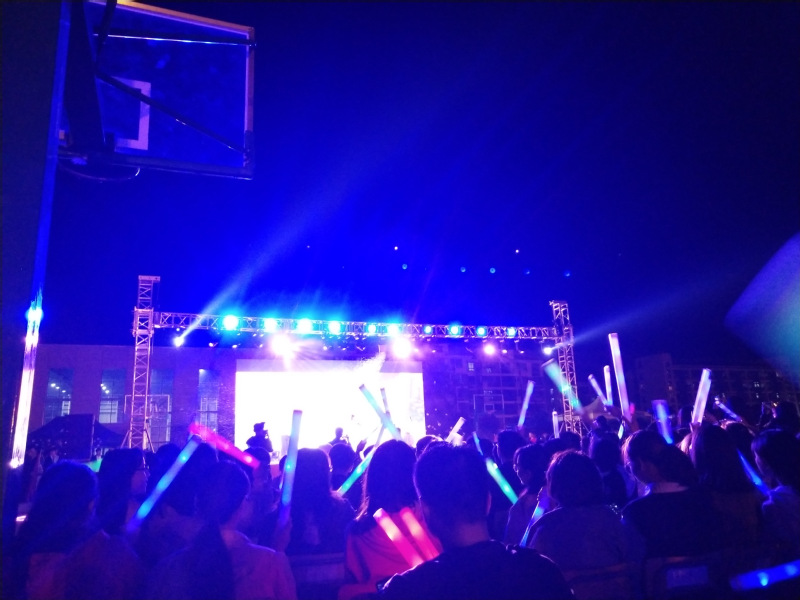 一支热舞《secret》瞬间点燃了现场气氛,吸引了全场目光。一首《后来》引起了大家的共鸣,新生们挥舞着手上的荧光棒,为演唱者打call。有的同学跟着节拍大声合唱着,此时此刻,风雨篮球场就是一个小型演唱会现场。