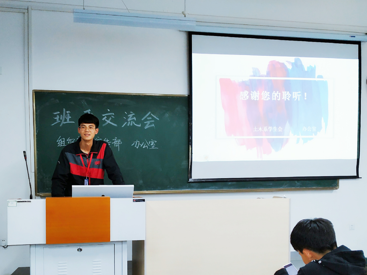 为加强学生会各部门间的交流,让班委和同学们对土木工程系学生会有深入了解,到11月6号为止,安徽建筑大学城市建设学院土木工程系学生会生活部、纪检部,学习部、文艺部、体育部,组织部、宣传部、办公室在南教201分别举办了三场班委交流会。到场的有主席王玮,副主席王乐、杜成、丁一,以及各班班长和班委。