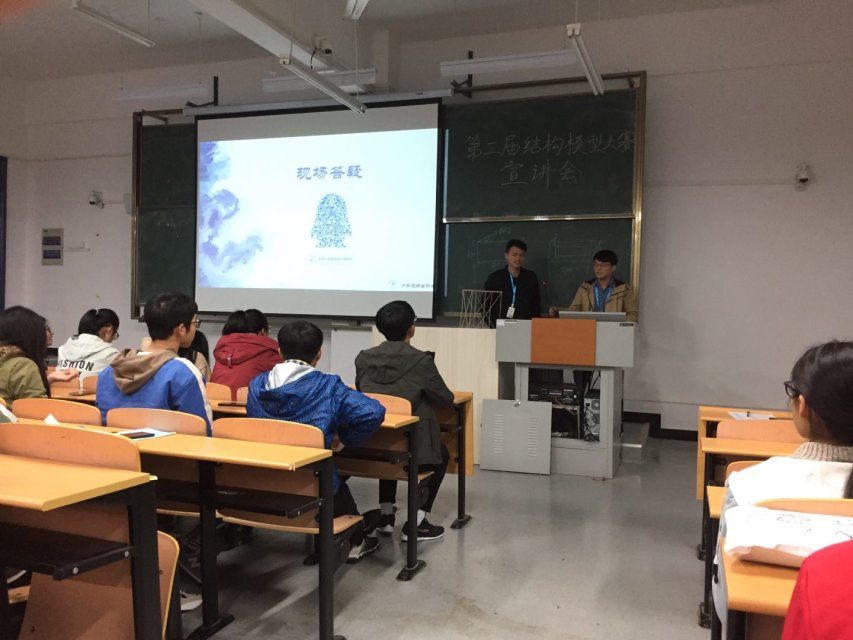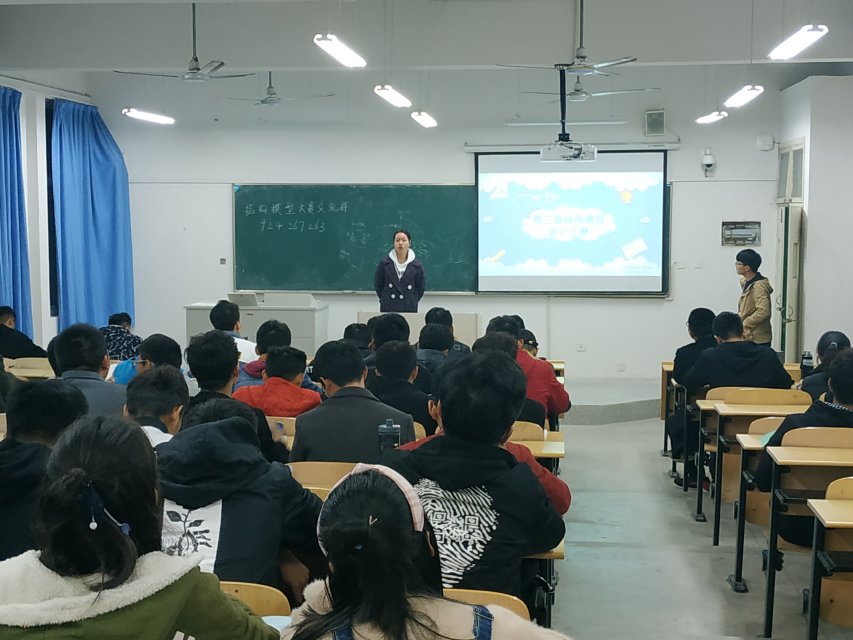 11月6日晚7点,在各位同学的深切期盼下,第三届结构模型设计大赛宣讲会在南教学楼108室准时开始。宣讲会上,会长段超向各位参赛队员们讲述了往届大赛中的多个精彩瞬间,并细致为大家讲解了比赛中的各个环节的加载细节。随后,副会长李伯安为各位选手们详细的讲解了本次比赛的赛题内容并分享了众多做模型的小细节,让大家受益匪浅。会议结束后,协会的各位同学为参赛同学们分发了材料。参赛同学们在经过两位学长的细致讲解后,手捧材料,信心满满。