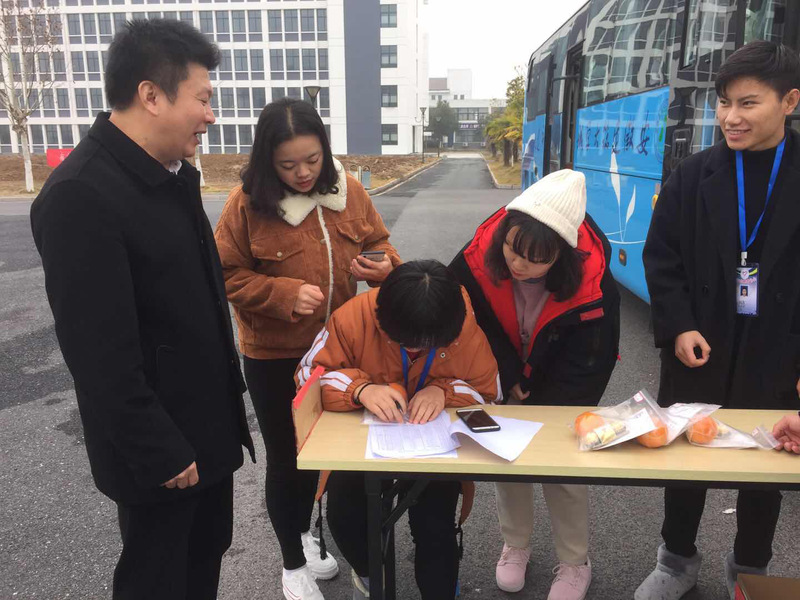 上午,我院董事长林瀚,院长张伟林,副院长田园,行政办公室主任、团委书记王利康,学生处副处长林岳、范慧娟以及各系部分教师早早来到了现场,董事长为参加考研的学子送去温暖的祝福,叮嘱考生们确保安全,并祝愿同学们考出佳绩,实现梦想。院领导们与考生亲切交谈,为考生加油鼓劲,关心考生的状态及车辆安全问题并对志愿者的付出表示感谢。学生处及团委把带着浓情祝福的手写明信片,寓意着诚心、诚意、成功的橙子以及增加能量的巧克力,送到每一位考生手之中,浓浓爱心驱寒意,莘莘学子展春光。