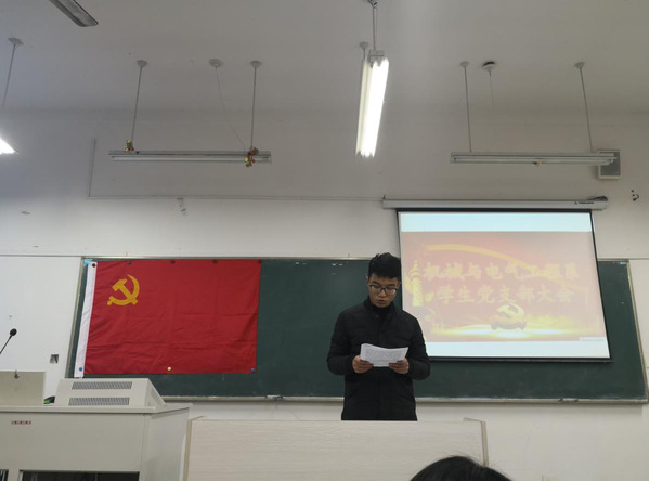 为响应党的号召,培养优秀党员,机械与电气工程系学生党支部于12月27日13:00,在东教102隆重召开预备党员接收大会,此次大会由机械与电气工程系学生党支部书记刘文君同志主持,支部全体党员参加。