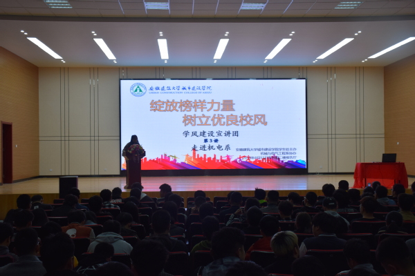 4月11日,安徽建筑大学城市建设学院“绽放榜样力量,树立优良校风”学风建设宣讲活动第三场在图书馆二楼报告厅圆满举行,学生处、机械与电气工程系老师,宣讲团成员、机械与电气工程系学生参加了本次活动。5位学生代表分享了他们的学习、生活和考研等经历,并现场与大家互动交流。本场宣讲会由程海苗老师主持。