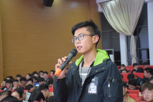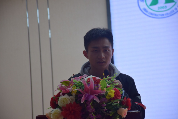 最后上台的是来自建艺系的朱涵宇学长,作为一名退伍归来的学生,他在学习上非但没有落后,还多次获得奖学金及各种荣誉称号,成为同学们的榜样。他认为,“在学习上要学会树立目标,坚持不懈;对于未来的发展路径,同学们可以早规划,做足准备。”