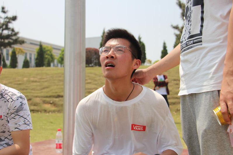 最后他在朋友的搀扶下走到一旁休息了起来,虽然没有拿到好的名次,但是在朋友和同学的眼里,他依然是成功的,是属于他们的英雄。
