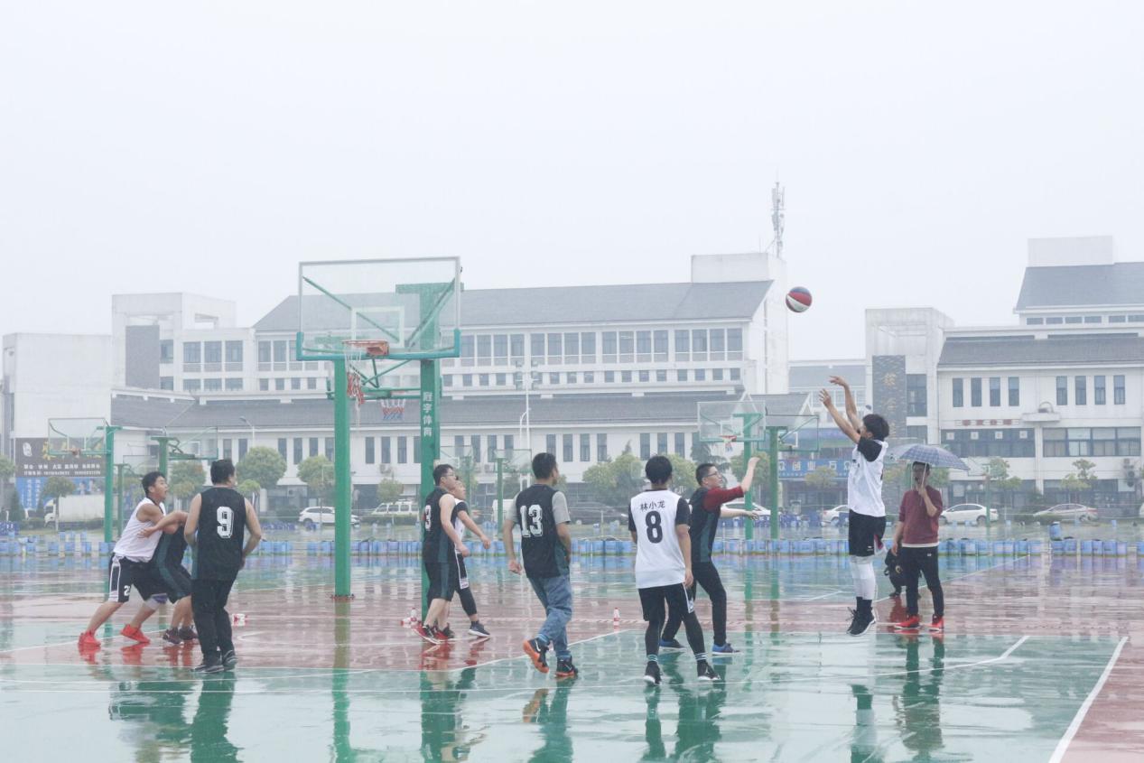 下午,轻柔的雨滴洗涤了大地,滋润了万物。篮球友谊赛便在这样的绵绵细雨中展开了。伴随着裁判一声哨响,篮球代表队的球员们都迅速投入到比赛中。随着比赛的进行,整个球场充满了欢乐而紧张的气氛,球员们的激情都淋漓尽致的体现在篮球场上,激烈的抢球,敏捷的运球,漂亮的投篮。
