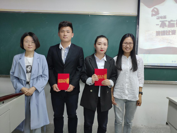 我系参赛人员分别作了以初心、奉献、使命、爱岗敬业等为主题,通过这种方式表初心,谈使命,落实党的十九大精神,最终确定了一、二、三等奖获奖人员,他们分别是沈佳林、顾运生;程梦雪、林德民;田亮、万飞耀;机电系党支部书记刘文君老师为他们颁奖。听着党员们一个个愤慨激昂的口号,观众心中也不免热血沸腾,这仿佛不是一场比赛,而是党员们对祖国的呐喊。