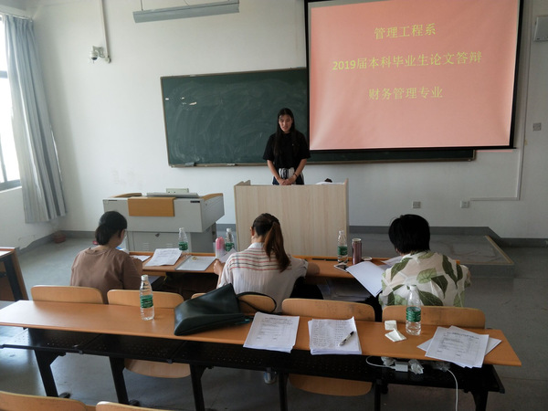 为有效推进2019届毕业答辩工作,安徽建筑大学城市建设学院管理工程系成立了由副院长王志建担任巡视委员,系主任曹泽教授担任主席的毕业论文(设计)答辩委员会,各专业成立由专业助理担任组长的答辩小组。为了不影响正常的教学秩序,答辩安排在6月1日和2日周末进行。工程管理、财务管理、市场营销和人力资源管理四个专业毕业生及全体教师参与了本次答辩工作。