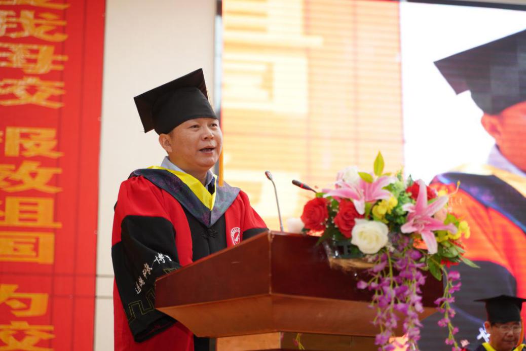 随着国歌庄严的旋律落下,学院董事会董事长林瀚发表致辞。董事长在讲话中分享了他的人生感悟,对毕业生提出了四点要求:一是要树立终生学习理念,人应当拥有“学习”的习惯;二是要心怀大爱,懂得感恩,将贡献辐射到全社会;三是要以真诚为本,赢取圆满人生;四是要乐观进取,永不言败,将磨难作为历练,活出自己的精彩。