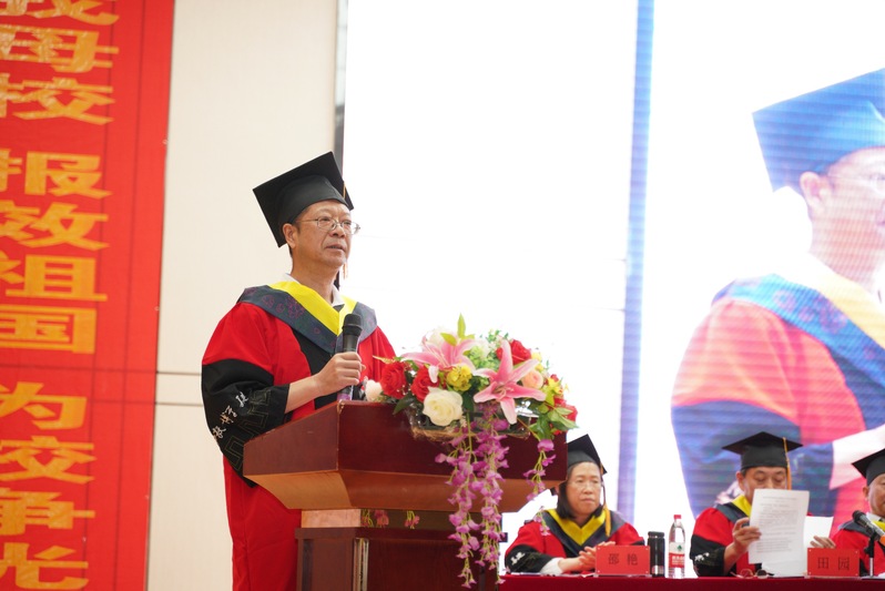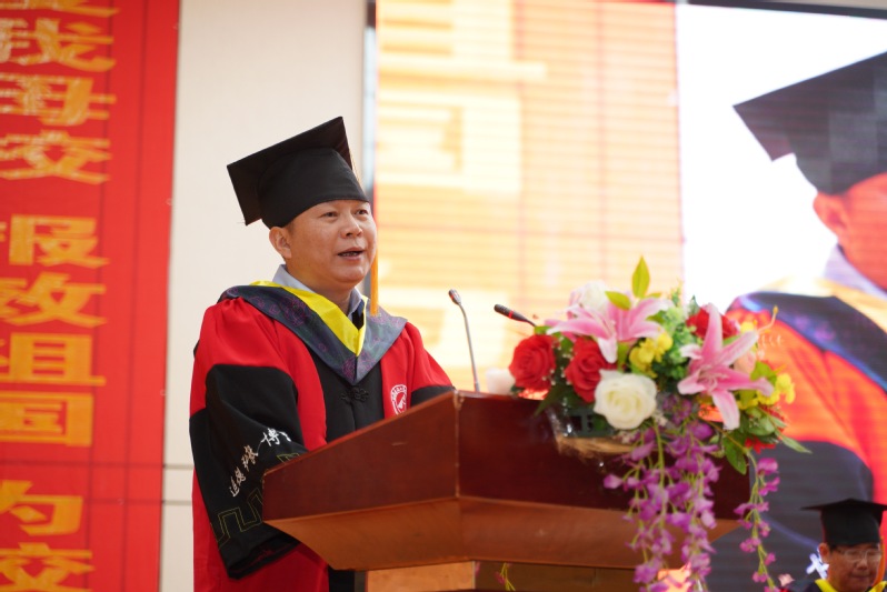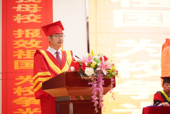 学院董事长林瀚在典礼上致辞,为同学们的优良表现点赞,对同学们能顺利毕业表示热烈的祝贺和美好的祝福!向所有为城建学子成长成才付出关爱与辛劳的父母、师长和朋友们表示衷心地感谢!林瀚在讲话中表示:“在你们即将离开校园之际,作为你们的师长,希望你们尽快融入社会,赢在终点,拥有幸福圆满的人生。”并与同学们分享了自己的四点人生感悟:一要终身学习,起点领先都是暂时的,只有终点胜出才是永恒的定格;二要心怀大爱,努力为社会做贡献,做一个有温度、有担当的人;三要真诚为本,只有以真为本、以诚立身才会有幸福圆满的人生;四要乐观进取,勇敢面对人生中的困难和挑战,不断进取,就一定会笑在终点。