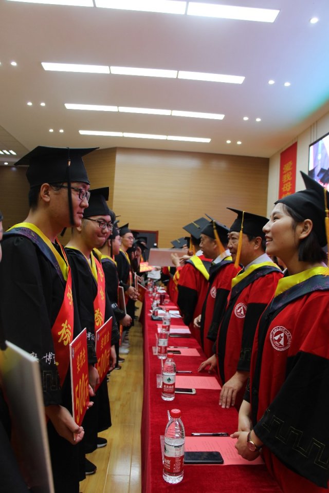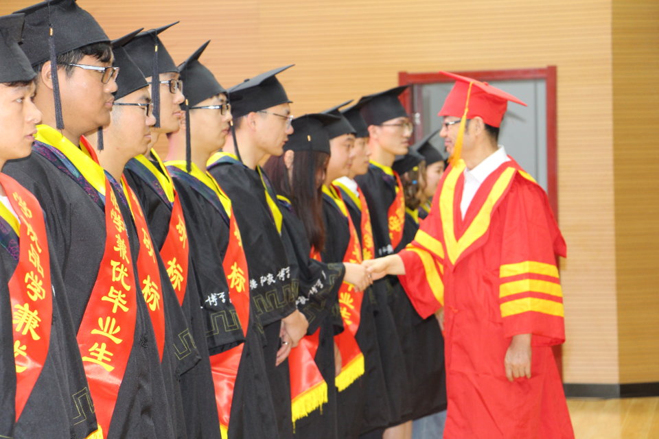 毕业典礼伊始全体起立奏唱国歌。师长们的殷殷嘱托、毕业生们的铮铮誓言和同窗们的深情寄语将典礼氛围推上高潮。仪式一项一项的进行,大家的离愁也越来越浓。院长给各位毕业生扶正流苏集体合影,大家的离别之情至此迸发。