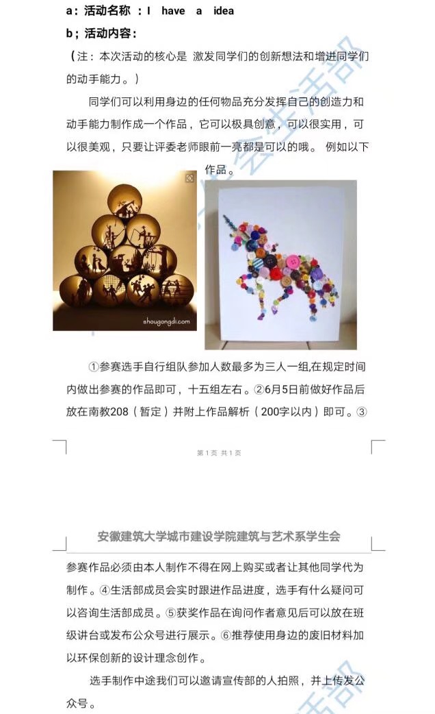 初夏来临,是活力,是激情,魅力的五月,是头脑风暴的开始,是青春的释放为展现大学生应有的青春活力丰富同学们的课余生活,展现大学生活的精彩,开发同学们的思维,充分利用专业的知识,来在动手动脑的同时也为生活增添一些乐趣营造浓厚的创意氛围,提升学生的创新能力,建艺系生活部举办了此次“建艺杯”创意设计大赛