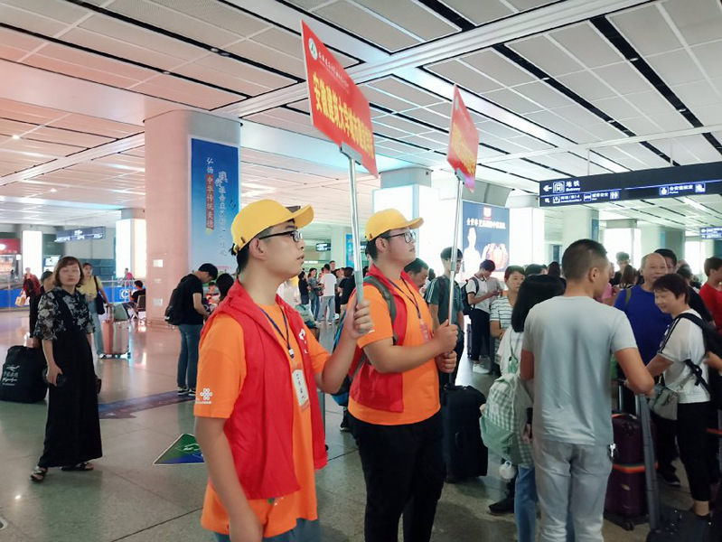 除了校内,在火车站、汽车站他们忙碌的身影也是一道靓丽的风景线。每一趟车辆到站,新生和家长一下车,迎新志愿者们便微笑着迎上去,接过他们手中沉重的行李,为其缓解一路的舟车疲惫。一句句亲切的问候,一向向贴心的服务,欢迎远方而来的家人。志愿者们秉承互帮互助的宗旨,全心全意的为学生、家长服务,让新生能够在一个全新陌生的环境中也能感受到无私的温暖与关爱。正是这群可爱的志愿者是使新生的报道,更加安全、有序,使各项工作更能顺利进行。