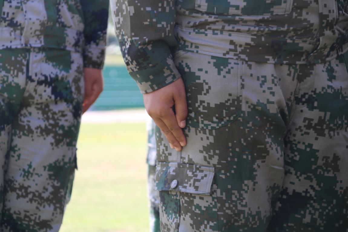 在拍摄的过程中能看出有些同学的双腿在微微发抖,但却没有一个人停止军姿站立手指合拢,紧贴大腿。目视前方。眼神中的坚定从未消失过。。即使很累很热,他们依然咬牙坚持着,倔强的脸上写满了19届新生不向困难低头的精神。愿他们在此次军训有所收获,在军训的磨砺下成为飞得更高更远的雄鹰。