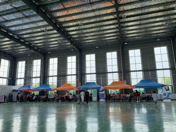 校园内迎新大道上彩旗飘飘,一条条欢迎横幅在道路两边迎接着新生及家长的到来。风雨操场内外,各系的迎新帐篷前人流攒动,迎新志愿者们在报到点与学生宿舍之间来回穿梭。新生及家长们的脸上洋溢着喜悦,欢笑声在校园内回荡。寂静了一个暑假的校园,在迎新这一天再次热闹了起来,充满了生机。