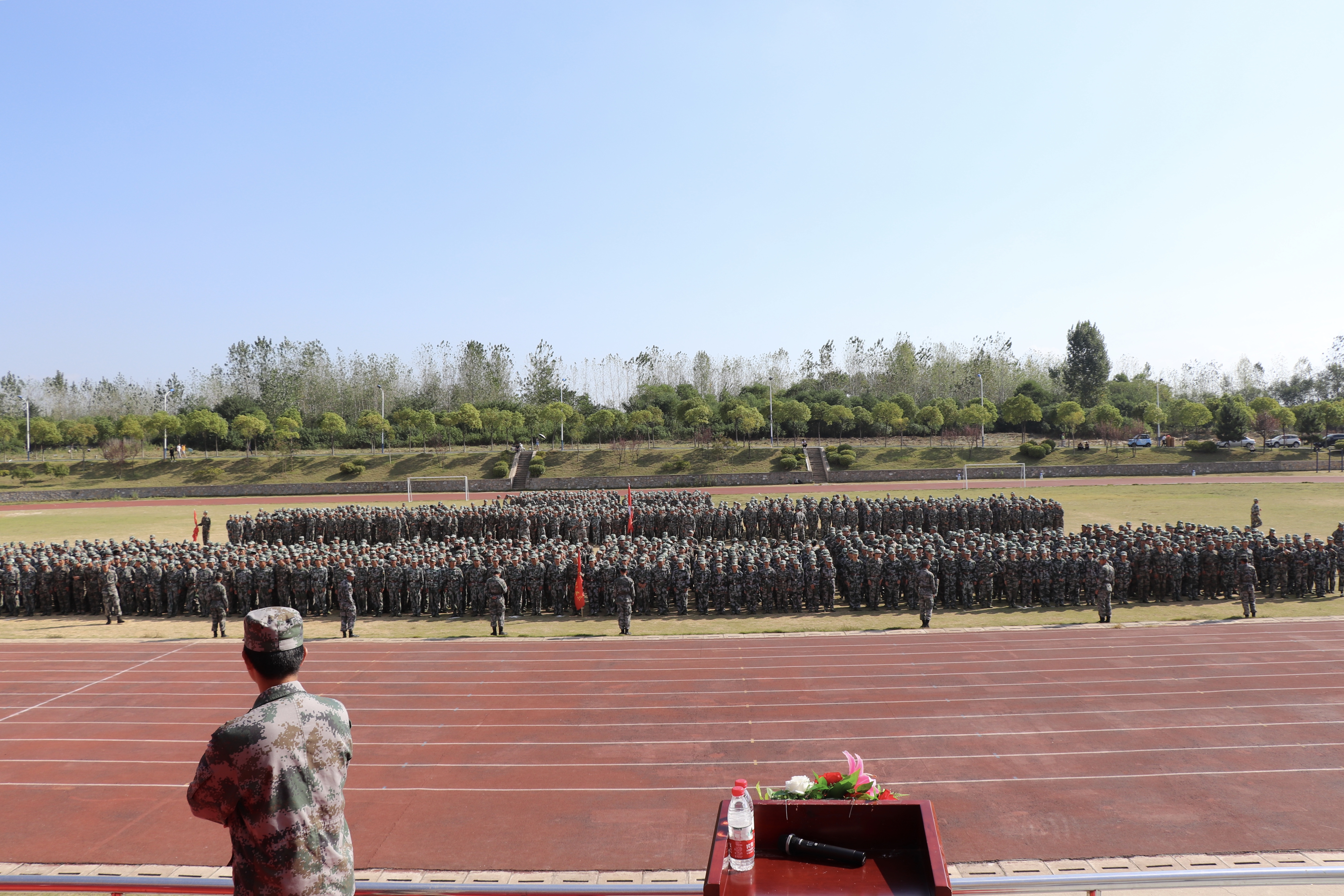 绿茵操场,红旗飘扬,伴着金桂飘香的秋风吹向了每一位2019级新生,在军训的十几天里,他们的眼神是淬炼下的坚定,他们的身姿是磨练下的挺拔,在宽阔的运动场上,由安徽建筑大学城市建设学院副院长、军训领导小组常务副组长田园宣布学院2019级新生军训结训汇报表演暨开学典礼正式开始。