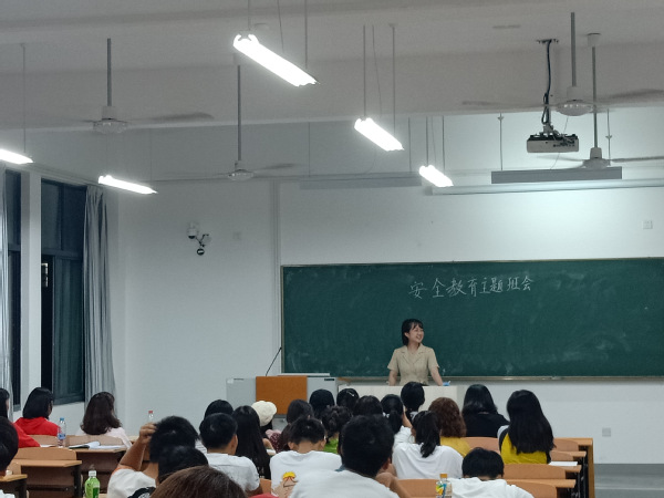 许桐老师在课上通知了国庆假期的相关事务,提醒大家注意人身安全和财产安全问题,同时也说明了学生在宿舍的注意事项,例如防诈骗、禁止使用大功率电器、注意防盗等。