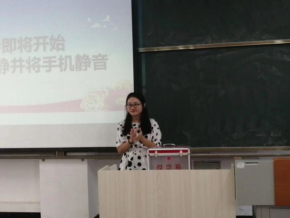 竞选演讲后,进入会议第二阶段—投票环节。本着公平公正公开的原则,参加会议的同学们认真负责地对团员代表候选人进行了投票,各位监票员对每位选民、每张选票认真负责,坚决杜绝徇私舞弊现象的发生,确保了此次选举的公平公正。最终投票结果是姜道霖同学担选本届机电系学生会主席。全体师生给予了热烈的掌声。