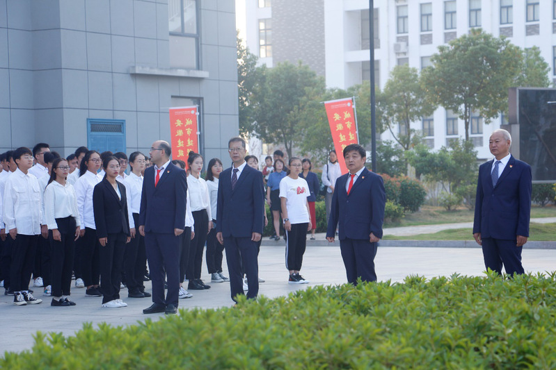上午7时整,学院领导、老师及学生代表仪容严整,精神饱满。随着一声“升国旗”的洪亮口令,9名旗手身姿挺拔地走向升旗台,“起来,不愿做奴隶的人们,把我们的血肉,筑成我们新的长城……”在嘹亮雄壮的《义勇军进行曲》中,鲜艳的五星红旗冉冉升起,学院领导、老师及学生代表神情庄重,肃立向国旗致以最高的敬意。