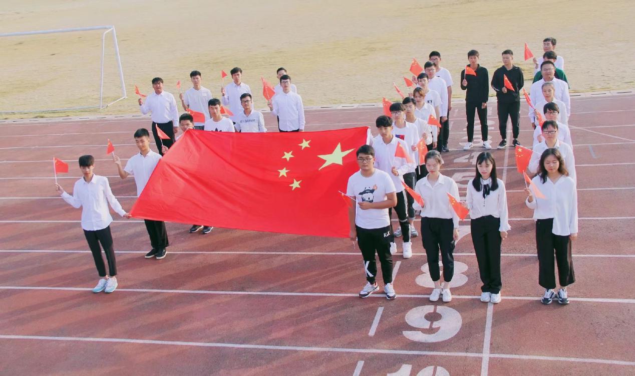 校园各处,大家有举着五星红旗摆出“70”字样,还有的摆出旗杆的形状,用各种各样的图形表达了对祖国最诚挚的热爱。同学们嘴上洋溢着幸福的笑容,心田饱含着热爱的情怀。