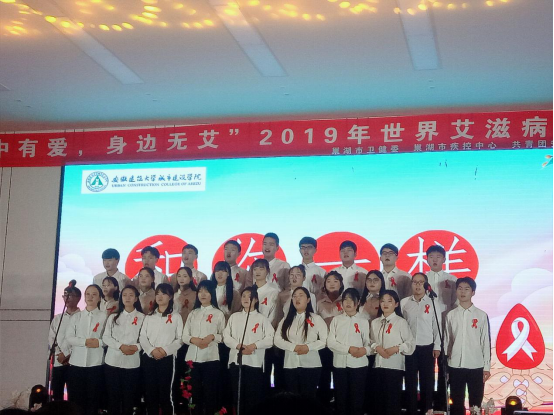 12月1日既是新的开始也是2019年的末尾,同时它也是一个充满爱的日子——第三十二个世界艾滋病日。在这样特殊的日子里,巢湖市卫生健康委员会主办,共青团安徽建筑大学城市建设学院委员会及巢湖市疾病预防控制中心承办,安徽建筑大学城市建设学院青年志愿者协会联合安徽建筑大学城市建设学院社团联合会及校医务室协办的“心中有爱,身边无艾”2019年世界艾滋病日主题晚会在图书馆大礼堂举办。本次晚会出席的领导有巢湖市疾控中心分管副主任郑基华,巢湖市疾控中心防艾科科长苏冬冬,学生处处长林岳,团委老师伍红平等。