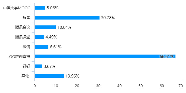 为保障线上教学顺利开展,管理系教师在超星平台基础上,利用其他平台作为辅助。据统计,上课平台按使用率排序分别是QQ群聊直播、超星、腾讯会议、微信、腾讯课堂、中国大学(MOOC),部分同学反映老师大多将以上平台结合使用,方法灵活。