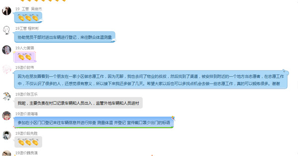 同学们在看完一系列感动的瞬间之后,心情十分激动,对那些在抗“疫”斗争中付出努力甚至献出自己宝贵生命的英雄们致以了崇高的敬意。然而,在此次疫情期间,我们身边也涌现出了一批默默奉献的志愿者,很多优秀的城建学子都参与到了防疫活动中。因此在这次主题班会上,辅导员也让部分志愿者分享了一下自己在整个疫情期间所做的一些贡献,并提醒大家作为青年团员,应担起社会责任,不负时代使命,坚持与党同频共振、同向同行,面对疫情树信心,面对挑战下决心,为打赢这场人民战争积极贡献青春力量,不过在服务大家的同时也要做好防护工作,保证自己的生命健康安全。