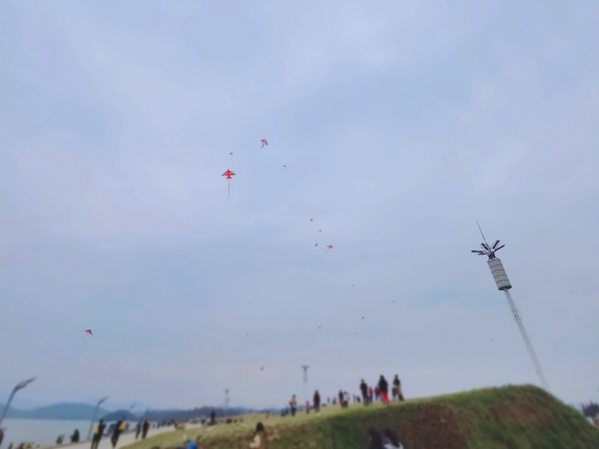 “草长莺飞二月天,拂堤杨柳醉春烟,儿童散学归来早,忙趁东风放纸鸢。”广场上,人们都戴好口罩,带着自己的孩子在放风筝。湛蓝的天空中飞舞着五颜六色,形态各异的风筝,马路上的人也频频驻足观看。