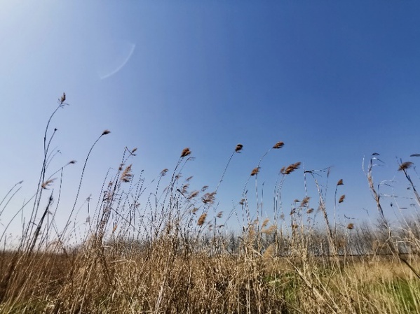 “芦苇声多雁满陂,湿云连野见山稀”,春天的芦苇刚刚发芽,根根挺立,像锥子一样指向天空。新生的芦苇,上粉下白,鲜鲜亮亮,一根根,一簇簇,一片片布满池塘和水边。阳春三月,柳条长长,细雨飘飘,芦苇片片,阳光在苇叶上划过,闪耀着光芒。