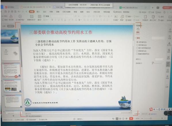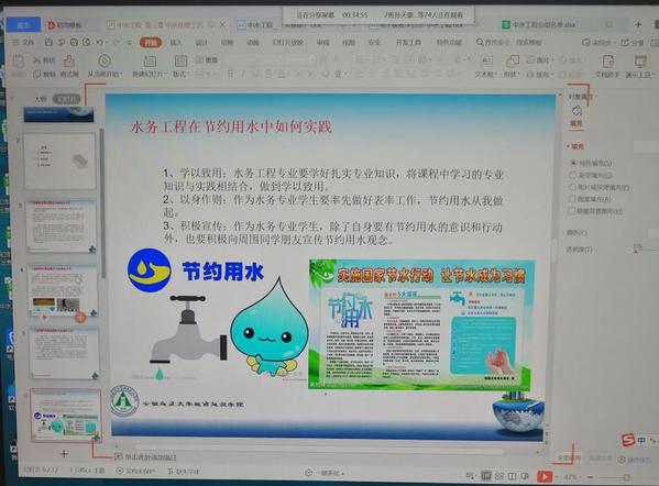 土木系结合《新时代爱国主义教育实施纲要》及相关政策对本专业进行思政教育。授课时注重中水工程课程内容与日常生活及国家政策的联系,着重引导学生学以致用。比如在讲授中水水资源紧缺及国内外中水回用现状时,结合国家“三部委联合推动高校节约用水工作、发挥高校立德树人作用,引领全社会节约用水”政策,引导学生能够将国家政策真正融入到生活及学习中,将学习的本专业知识用于实践,以身作则、先从自己做起,节约用水、不浪费每一滴水资源,此外也要积极发挥本专业的优势、向周围同学积极宣传节约用水的理念及方法。 并提出同学们要树立正确的水资源保护观,提高节约用水意识,对于促进国家经济发展,生态环境保护,实施可持续发展战略,都具有现实意义。并在本次课结束之前,再次强调“立党为民“是党的基本宗旨,满足人民群众的利益是国家稳定和发展的基础,而节约用水是人民根本利益的重要内容。希望同学们牢记作为水务人的使命与责任感。