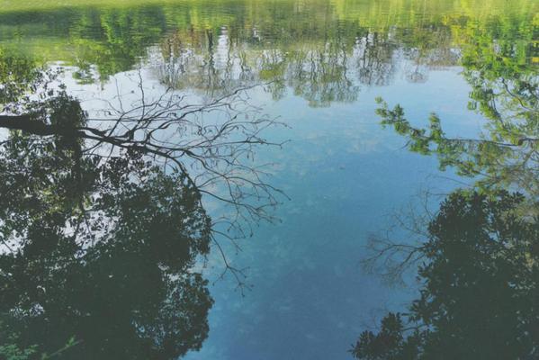 油画般的湖面将周围的生命之绿全都塞进肚子里,用来表示自己即使被脏物弄得蓬头垢面,也丝毫不影响他继续保持充满希望的内心。