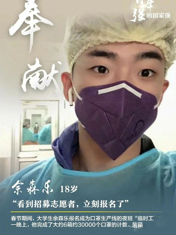 一百多年后,新冠肺炎疫情席卷而来,在病毒面前,青年们仍然冲锋在前、不畏牺牲,为守护武汉人民、全国同胞、甚至世界各国人民的生命健康而拼尽全力、奋不顾身。青年们的一腔热血,再次绽放在保卫祖国健康安全的最前线。