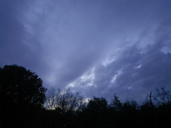 不经意间,墨色的浓云挤压着天空,沉沉的仿佛要坠下来,压抑得整个世界都静悄悄的。风凌厉地穿梭在树丛之中,与墨色的天空相呼应的是树木暗色的剪影,正是山雨欲来风满楼。