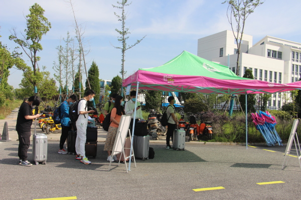 报到当天,全院师生上下一心,全体联动,在报到开始之前就为四个系分别搭好报到凉棚,以饱满的姿态和热情的服务,从扫码返校、行李消毒、量测体温、核对信息、查验轨迹、登记造册等程序,细心、严谨、一丝不苟的守护在学生周围。全体师生严格要求,筑起一道道坚实的屏障。他们坚守岗位,严格要求,做到“精准防控、守护安全”。