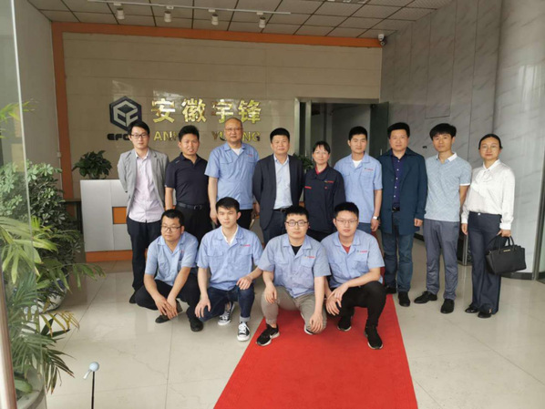 2020年5月14日,安徽建筑大学城市建设学院董事长林瀚,对外合作处处长何旵升,教务处副处长陈大伟,科技处副处长陈前程,机械与电气工程系副主任梁颖、机械教研室副主任解文辰老师一行前往安徽省合肥市的安徽宇峰智能科技有限公司进行考察交流并看望在公司工作的我校15届机电系机械设计制造及其自动化专业的学生。