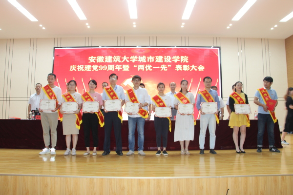 6月29日中午,安徽建筑大学城市建设学院庆祝建党99周年暨先进基层党组织、优秀共产党员、优秀党务工作者表彰大会召开,学院董事长、党委副书记林瀚,党委书记李义宝,副院长王志建、田园、马建国、杨彦友出席会议,党委副书记魏宪友主持会议。