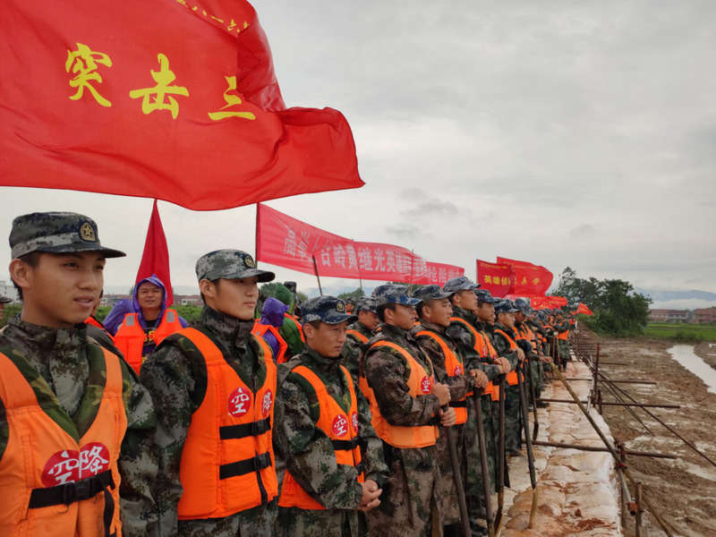 7月8日,安徽建筑大学城市建设学院17级学生佟大成同学所在的部队是空降兵部队,是中国人民解放军中拥有优秀传统的精锐之师。在险情最危急的时刻,佟大成同学和所在空降军某旅1000余名空降官兵火速驰援灾区鏖战大堤。由于河堤出现了200米的决口,土质松软不便展开工程机械作业,官兵们不得不采取人工流水作业,先搭建防洪堤骨架,再填沙袋,经过一昼夜的奋战,终于成功筑起了一道长200米、高5米的防洪堤,他们加固大堤、填堵决口,圆满的完成抢险任务。这些人民子弟兵发扬着“特别能吃苦,特别能战斗”的精神,始终奋战在抗洪最前线,尽最大限度的保护灾区人民的生命财产安全。