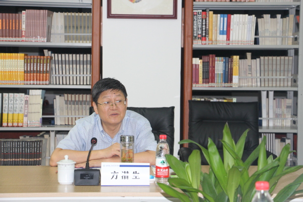 安建大党委书记方潜生发表讲话。方书记首先肯定了学院在硬件设施上的投入,接着他强调请学院务必对专家提出的建议引起重视,其中尤其要关注师资队伍建设,在方面的表述力求清楚、准确。之后,方书记在细节建设如屏幕、照片方面提出相应的意见,确保每一处都尽善尽美。