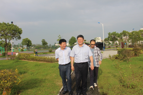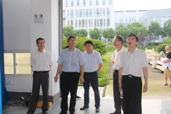 (参观实验室,左起:张伟林、方潜生、林瀚、王志建、孙道胜)