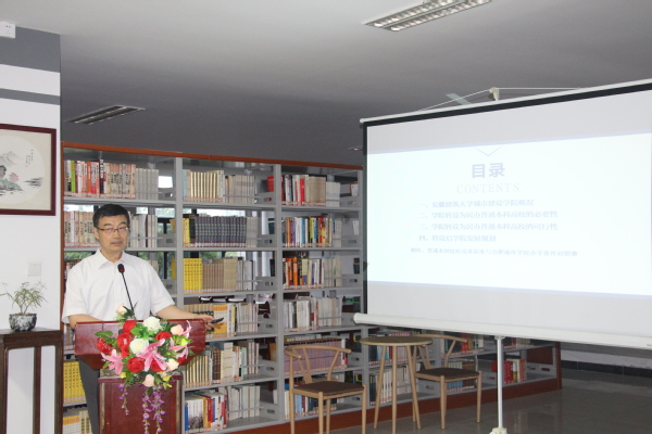 张院长对安建大领导与专家在百忙之中来到学院指导工作表示感谢,并代表城建学院对转设工作进行汇报。接着,由城建学院副院长马建国向与会领导汇报了上级部门对学院转设的反馈和要求。