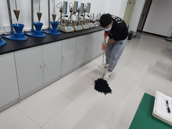 为让同学们有一个干净整洁的实验和学习环境,同学们集合完毕后,从清洁处领取了扫帚、拖把、抹布、水桶等清洁工具。分组从一楼实验室到四楼实验室共四层打扫卫生。同学们情绪饱满,认真工作,擦桌子、拖地、洗抹布细致入微,每个人都不怕累,不怕脏。