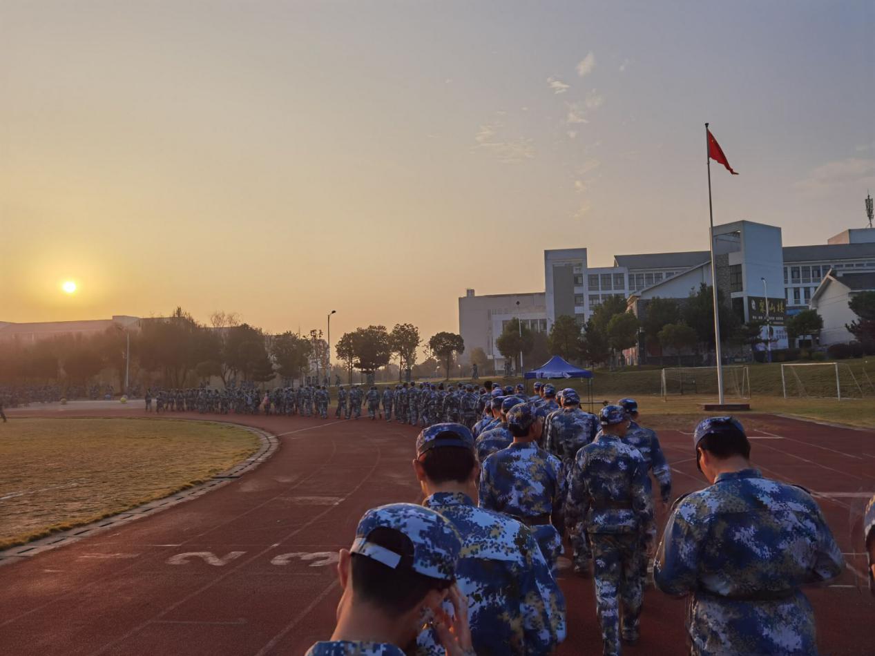 紧张的早训最终在同学们的辛勤付出下度过,与此同时,等待他们的军训演练也逐渐迈近了脚步。